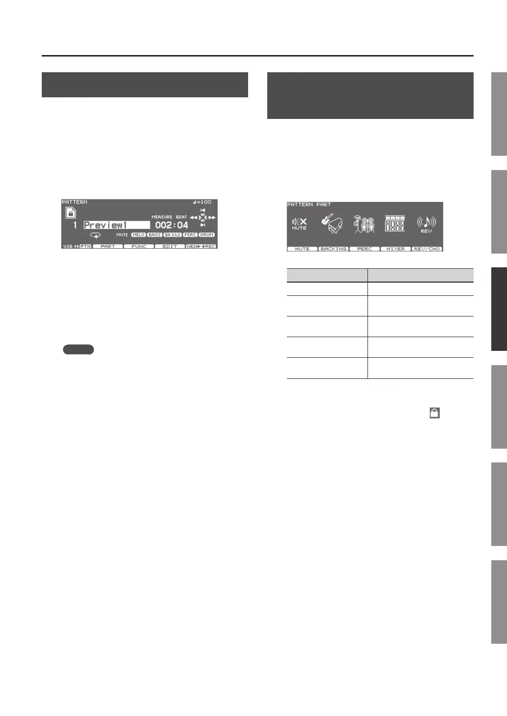 1. In the PATTERN screen (p. 90), press the [F2] (PART)
