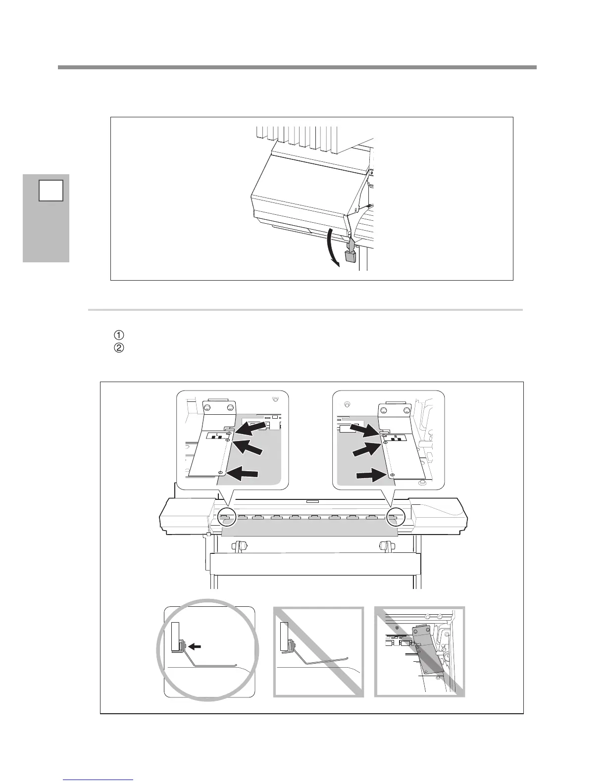 Align the centers of the holes of the media clamps with the both edges of the media.