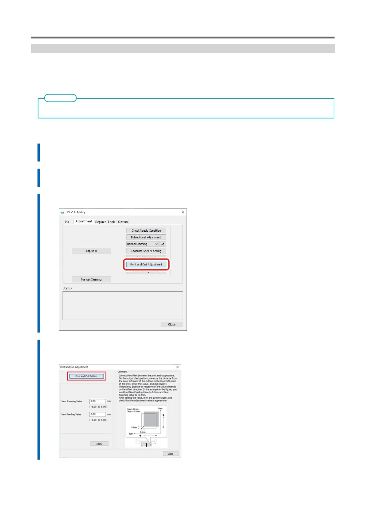 When performing both printing and cutting, adjust and align the printing and cutting positions. Depending