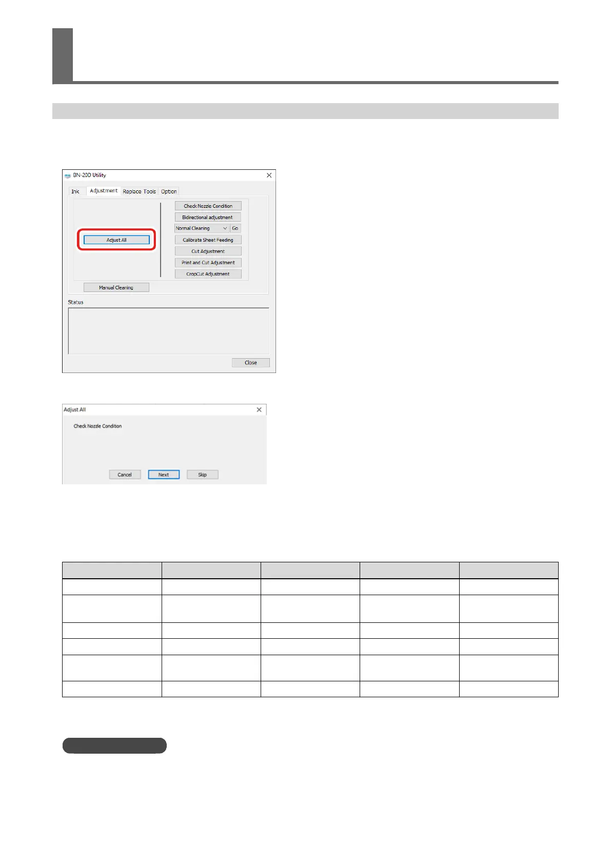 You can perform various output adjustments through a sequence of operations by clicking [Adjust All] on