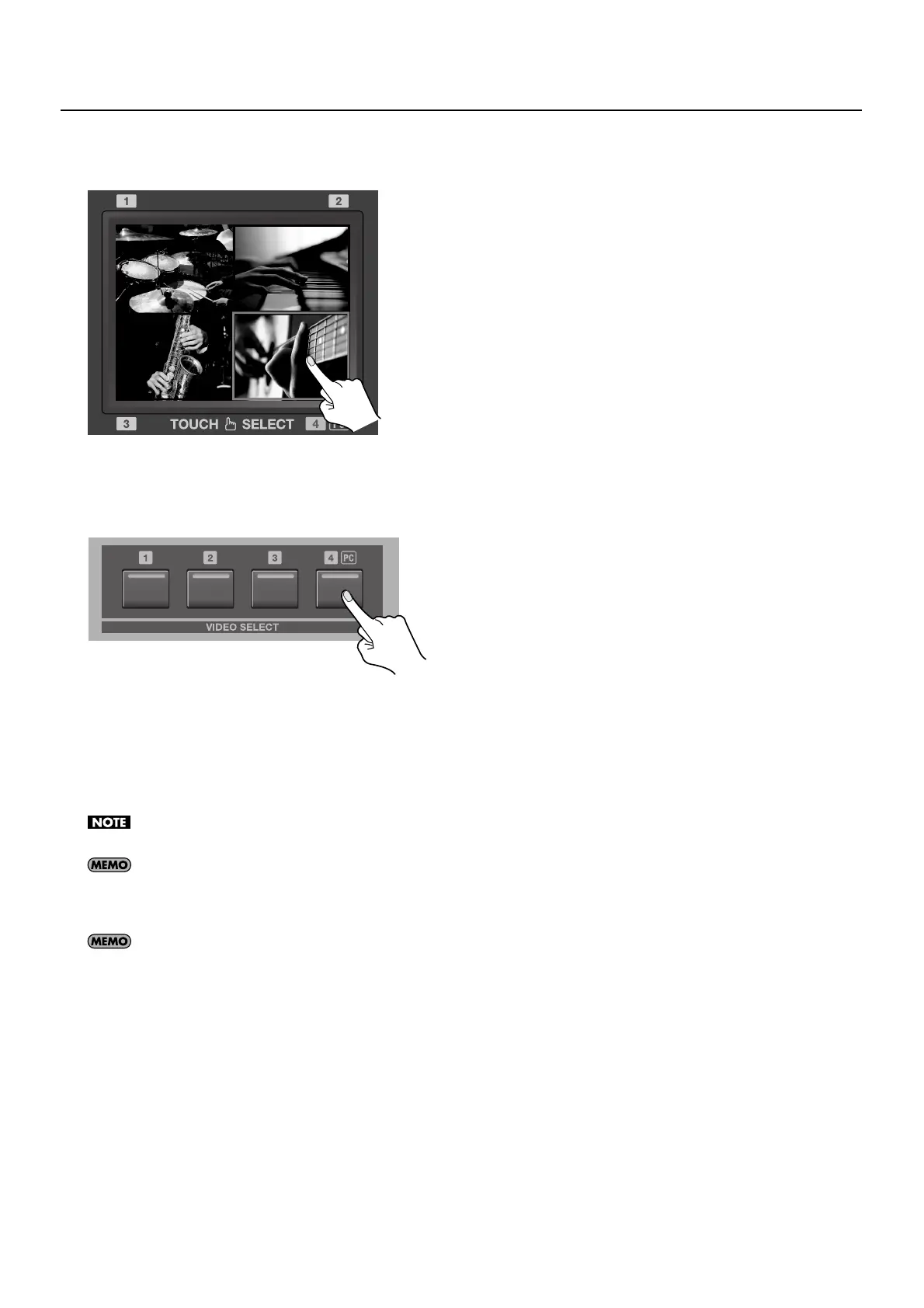 Use [VIDEO SELECT] buttons [1] through [4] to choose the channel for the inset screen. The indicator for the selected channel