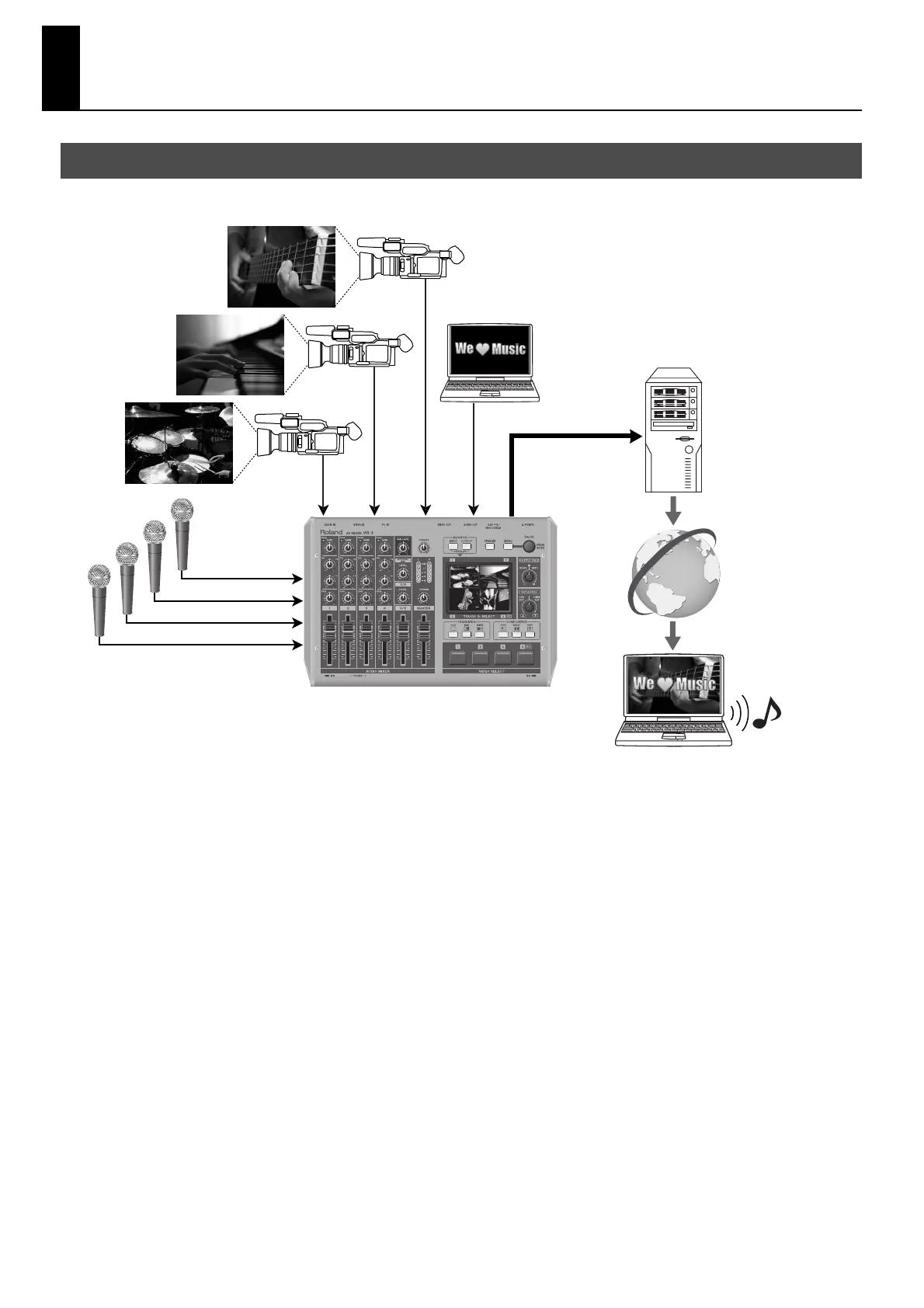 You can connect a computer to the USB port on the VR-3 and output the results of video and audio mixing.