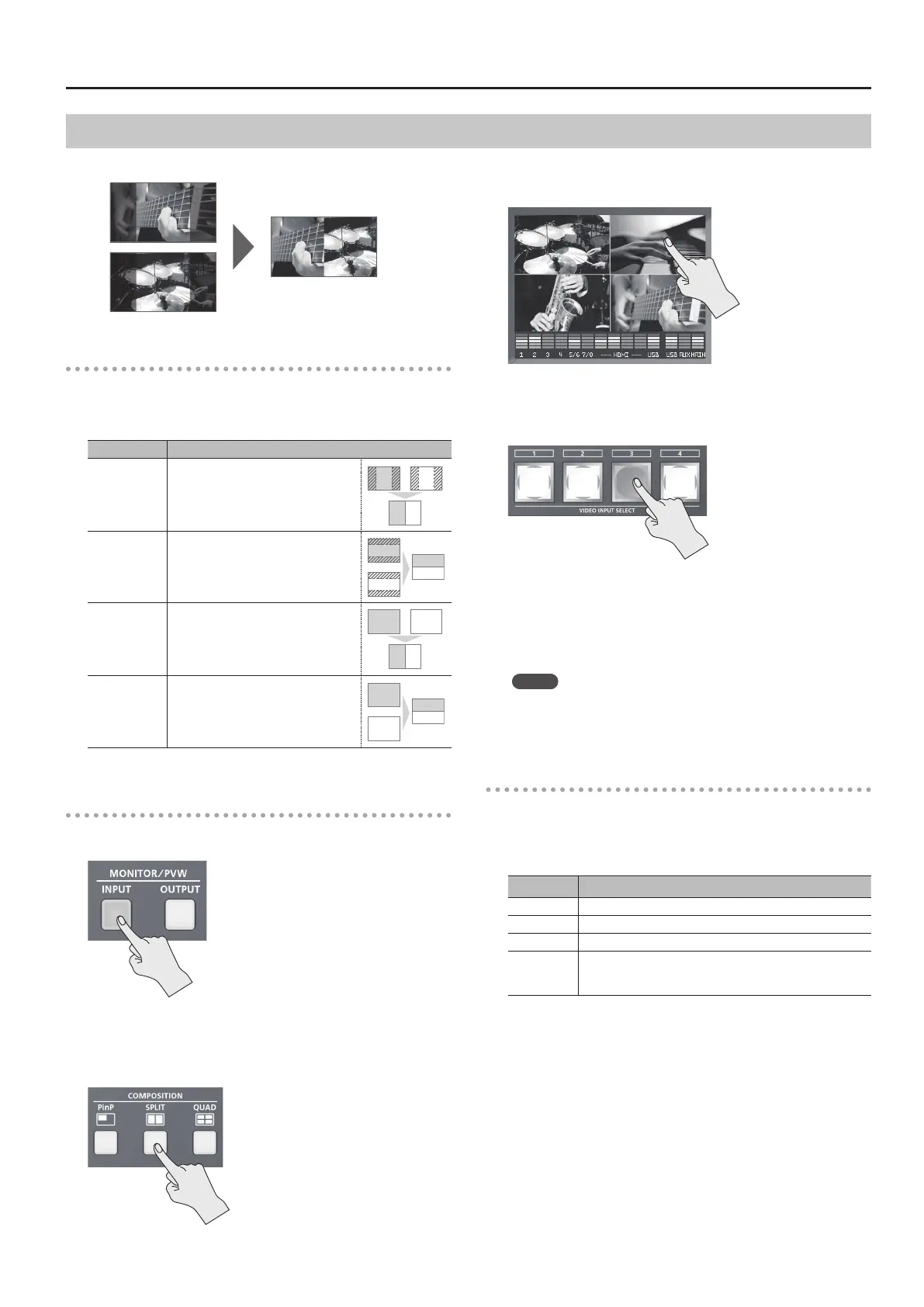 2. Press the [SPLIT] button to turn on video compositing
