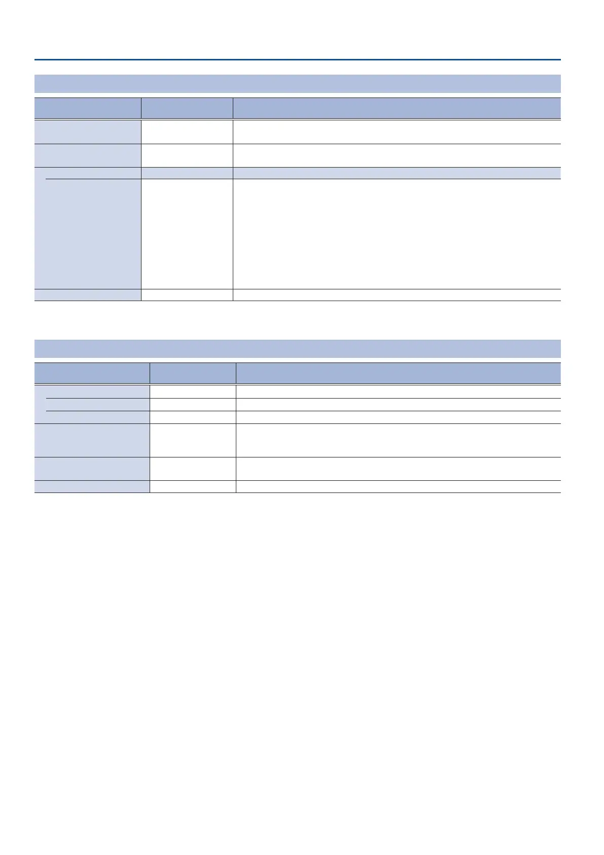 Value (bold text: default