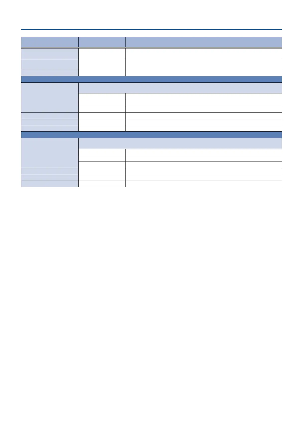 Value (bold text: default
