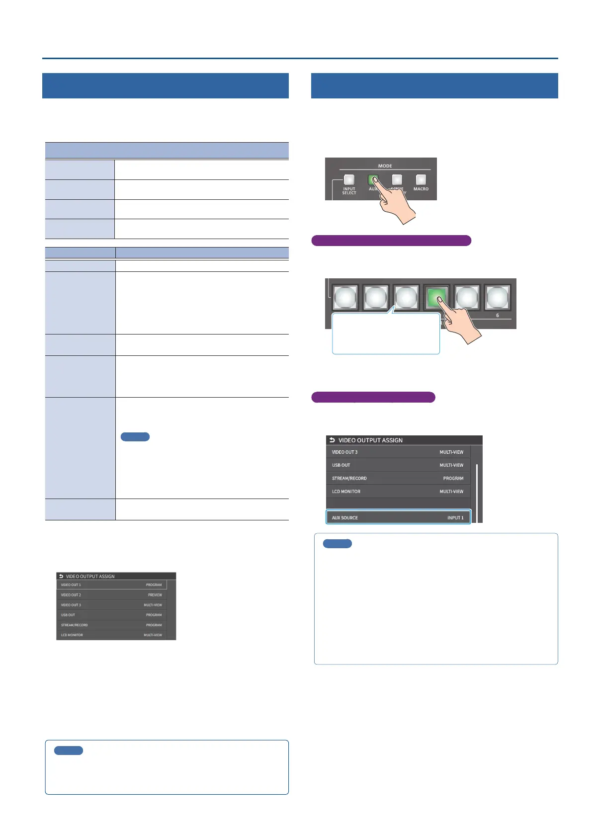 AUX 2 bus, MONITOR) for each jack, apart from the video bus (p. 55).