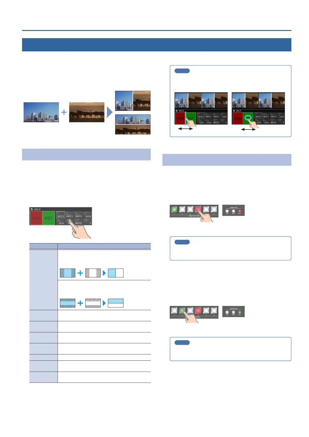 5. To turn o the split, press the [MIX] or [WIPE] button.