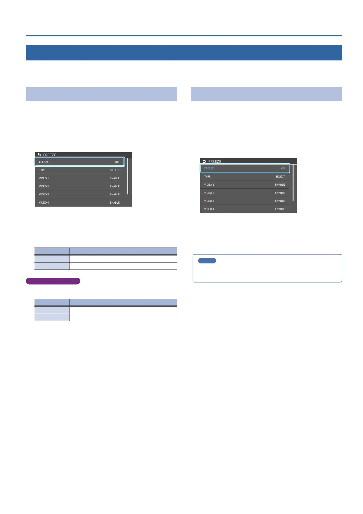 DISABLE The input video does not freeze.