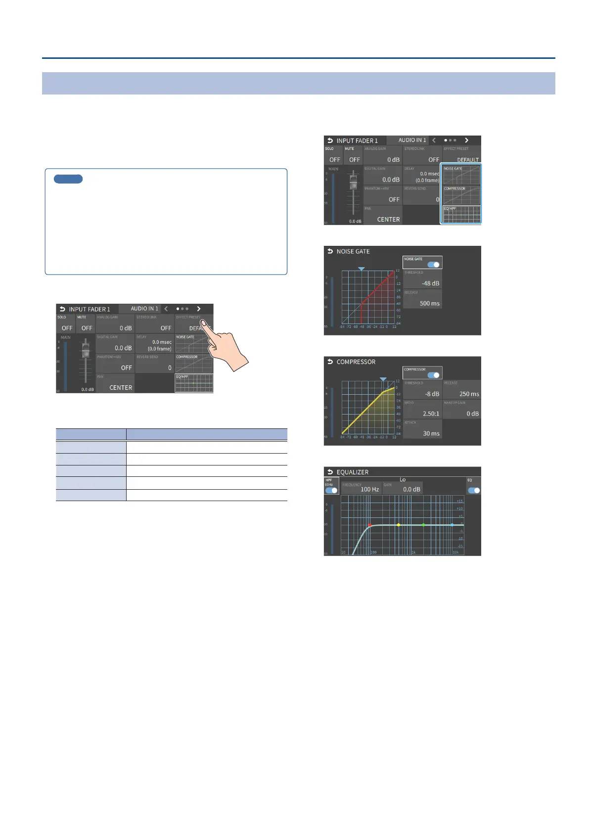 Touch the onscreen graphics to enlarge the settings for the eect. You