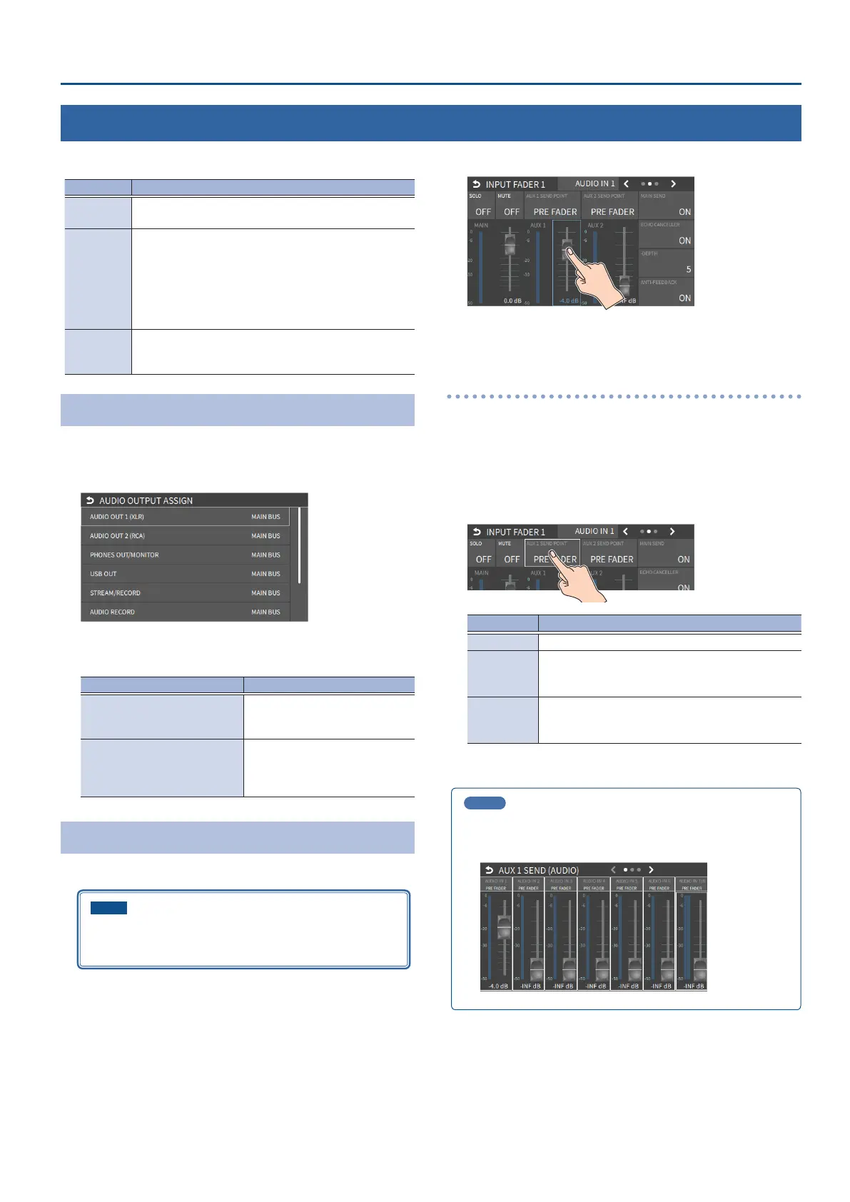2. Touch <AUX 1 SEND POINT> to make that setting.