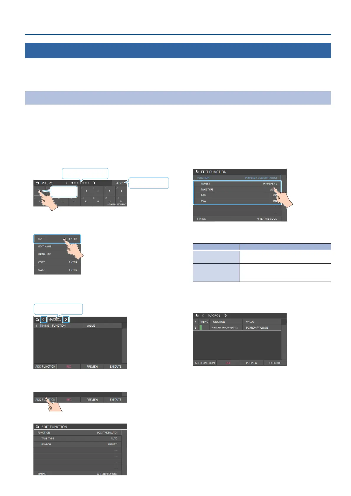 4. Touch the arrows in the macro number selection area to