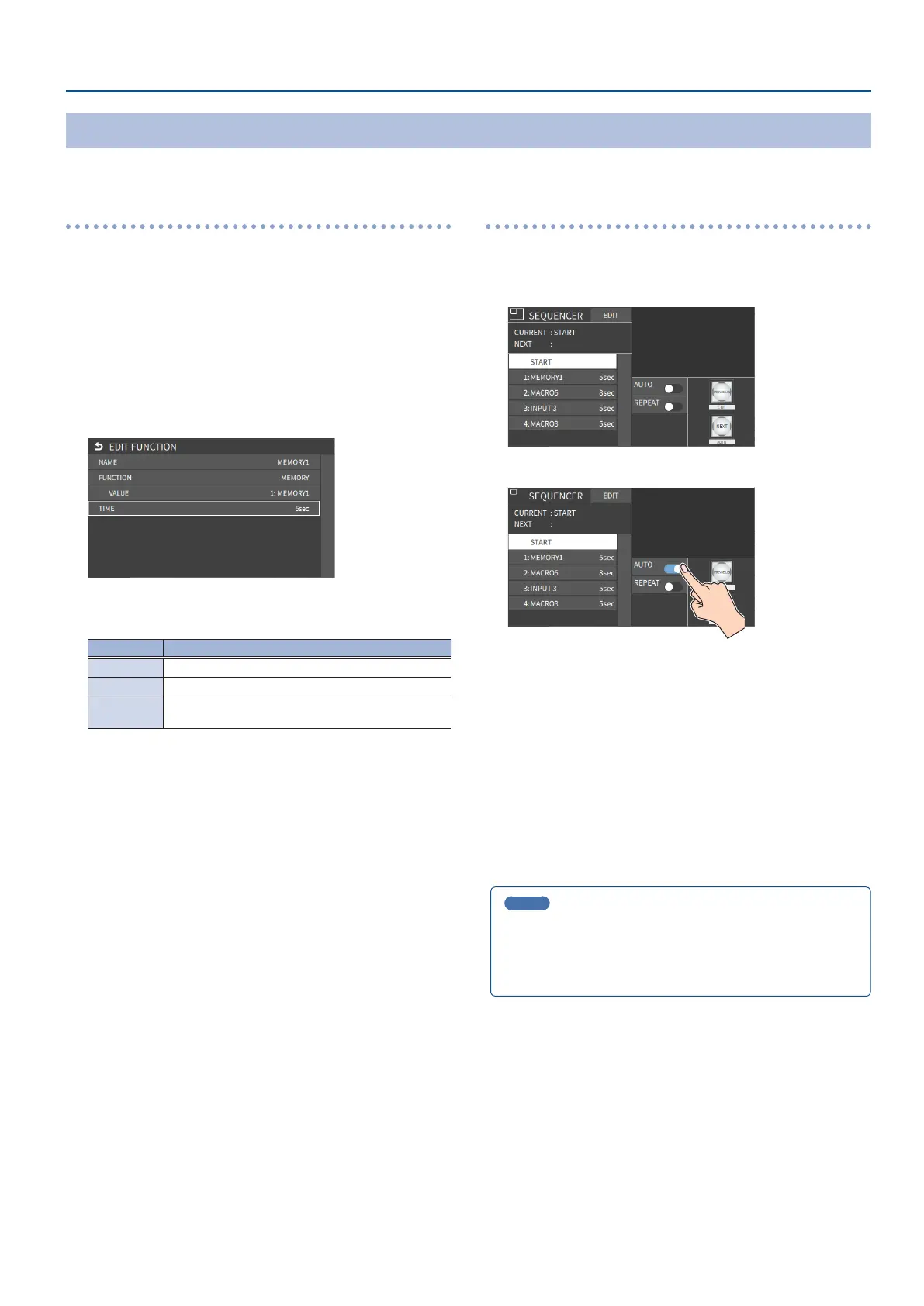Use the auto sequence feature when you want to make the functions recorded in the sequencer execute automatically.