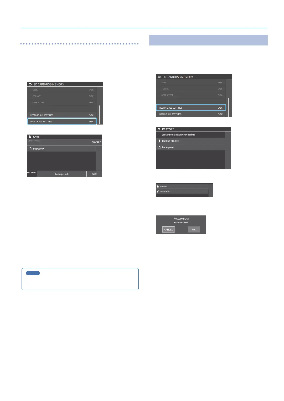 “BACKUP ALL SETTINGS”, and press the [VALUE] knob.
