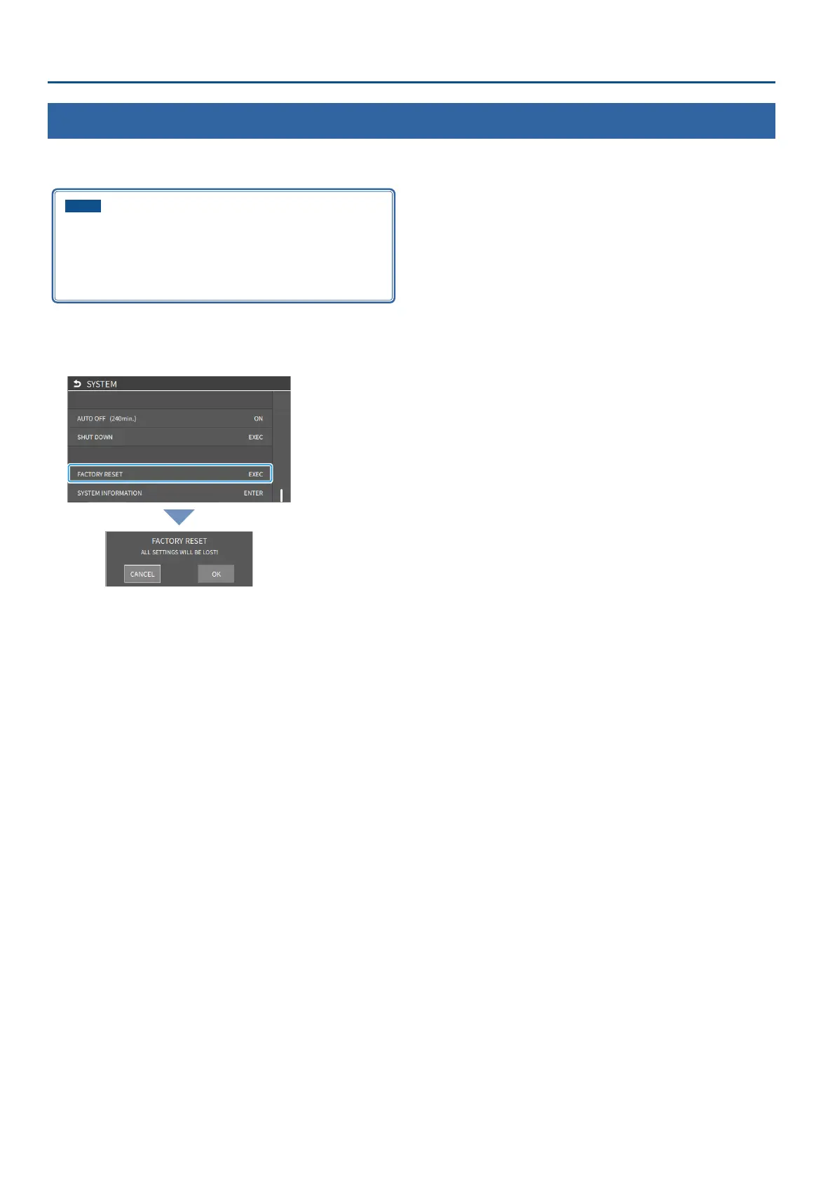 If following the procedures described in this manual does not cause the result you expect, try executing a factory reset.