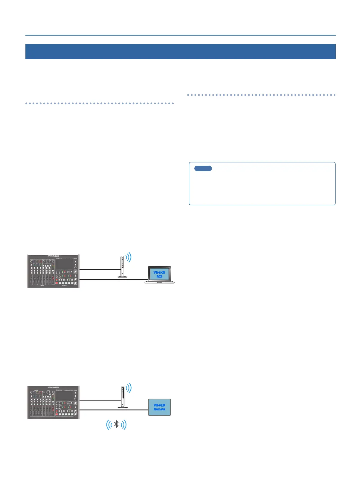 To remotely control the VR-6HD, you can use an external device to send control signals to the unit (p. 90), use a dedicated app, or use LAN/RS-232