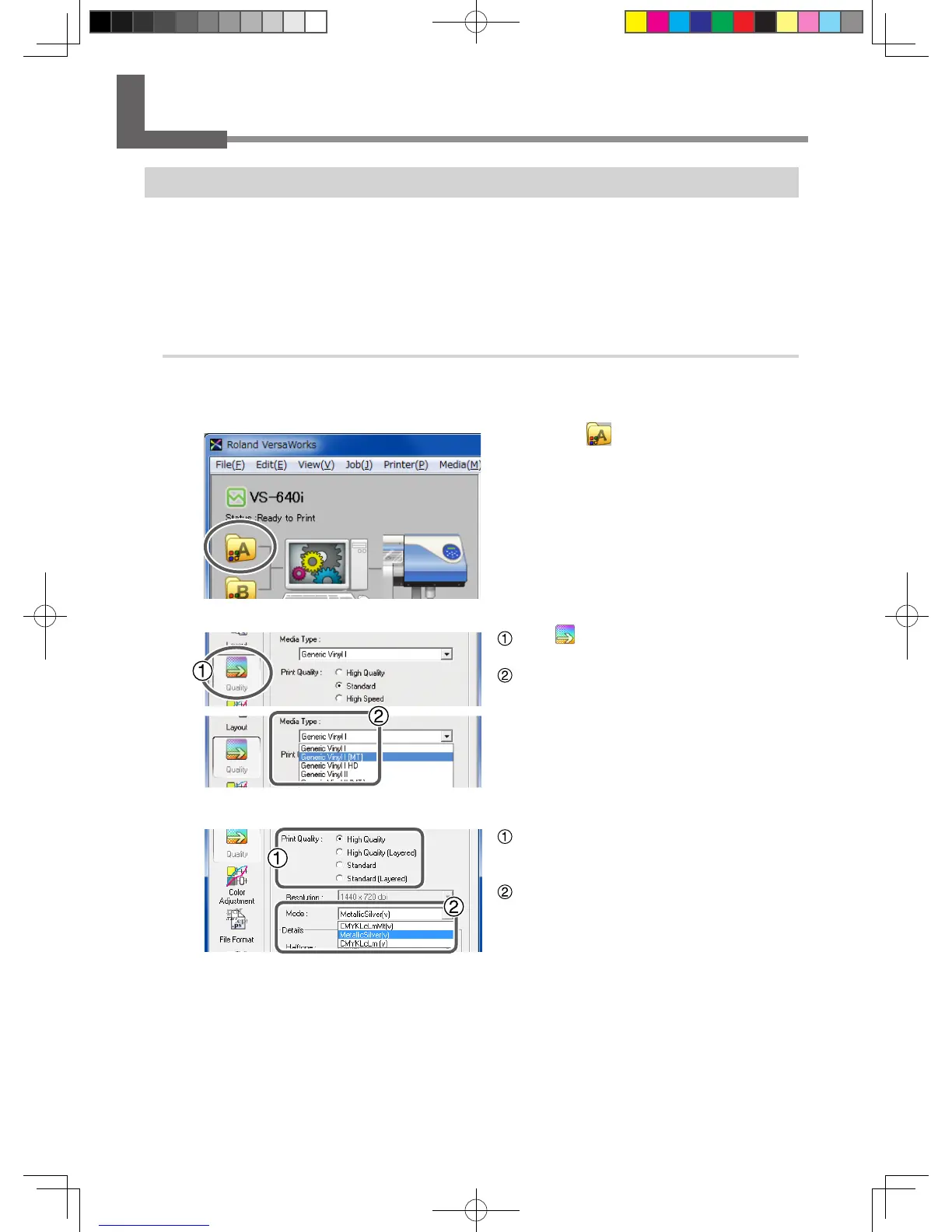 This section describes how to perform printing only with the metallic silver ink. To use the metallic silver ink