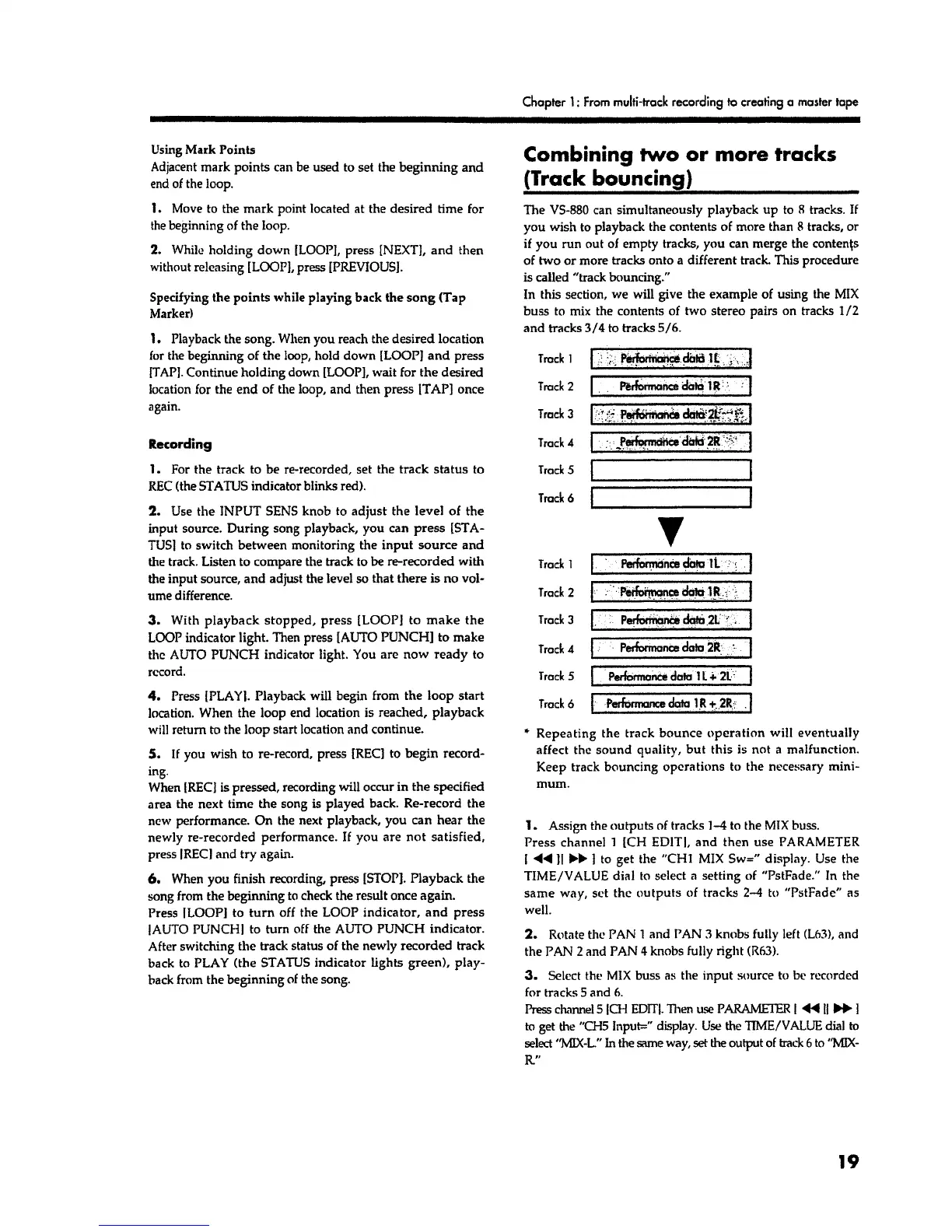 Roland VS-880 - Combining Two or more Tracks (Track Bouncing)