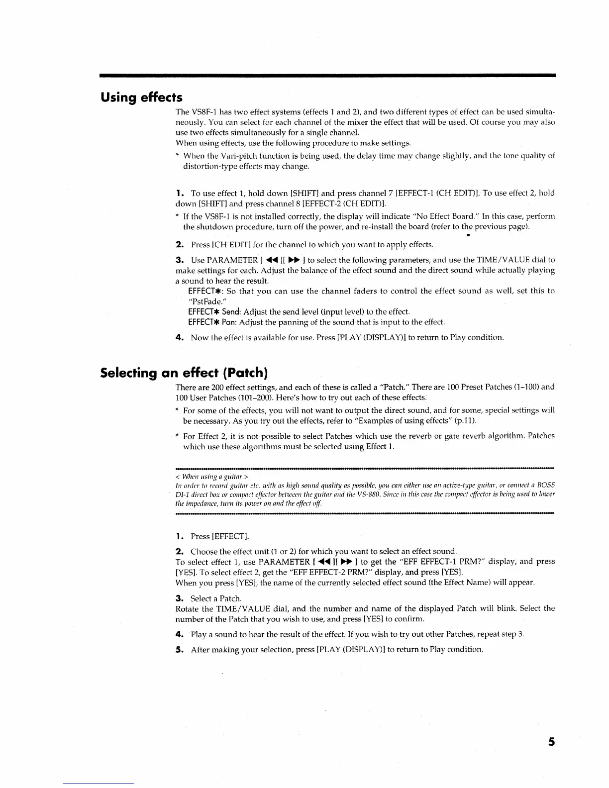 Roland VS8F-1 - Using Effects; Selecting an Effect; Patch