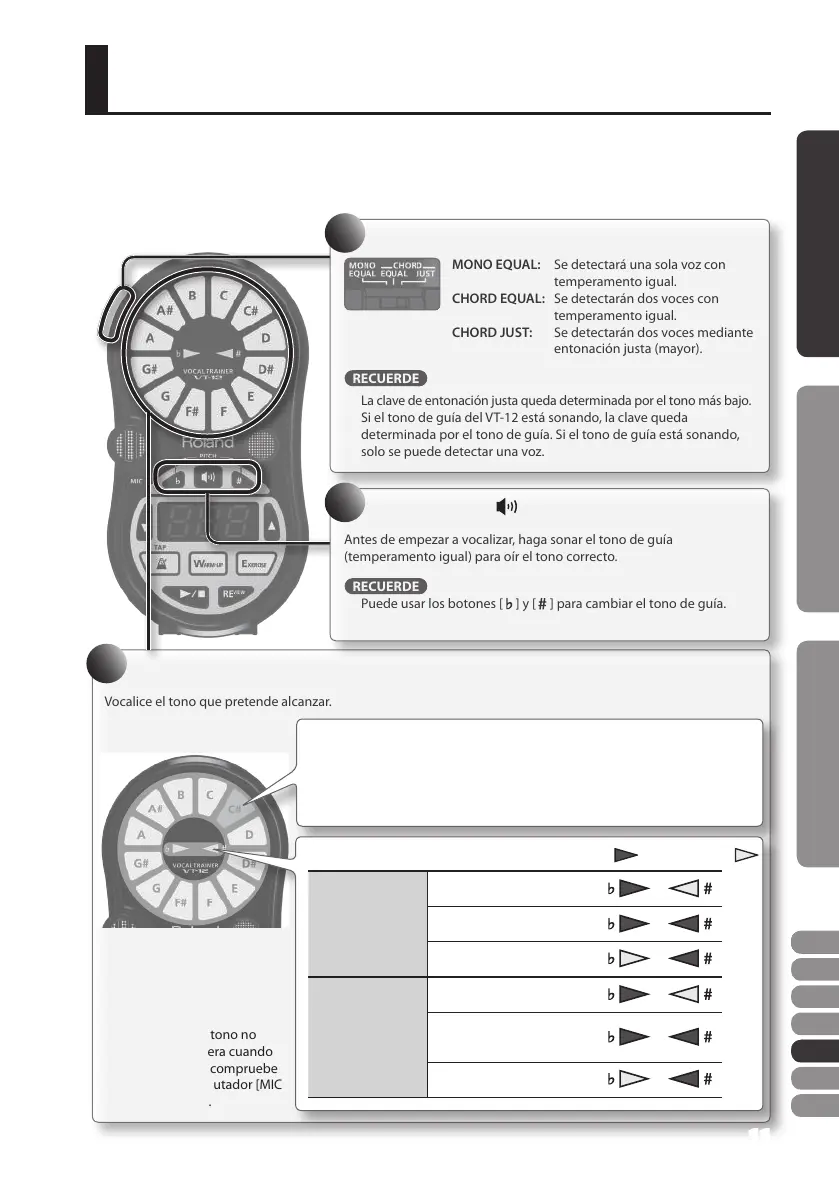 Antes de empezar a vocalizar, haga sonar el tono de guía