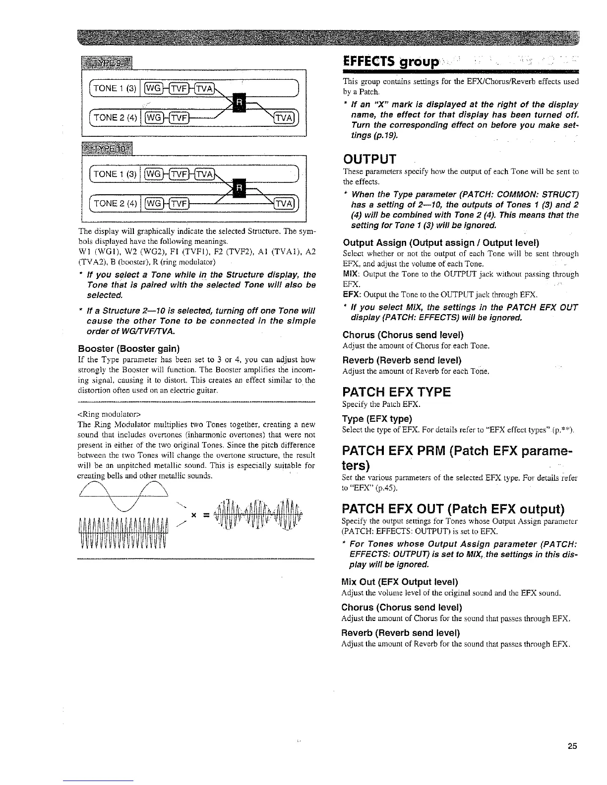 Roland XP-50 - Effects Group; Booster (Booster Gain); Output; Patch EFX Prm;Patch EFX out