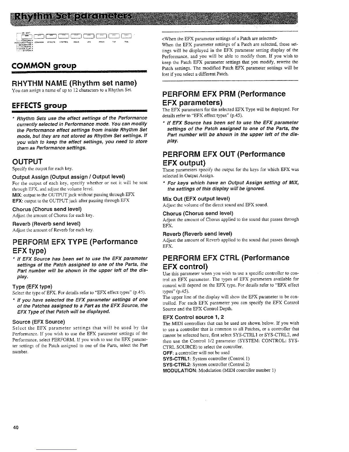 Roland XP-50 - Rhythm Set Parameters