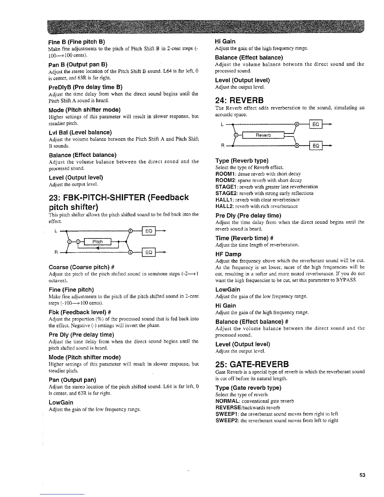 Roland XP-50 - FBK-Pitch-Shifter (Feedback Pitch Shifter); Reverb; Gate-Reverb