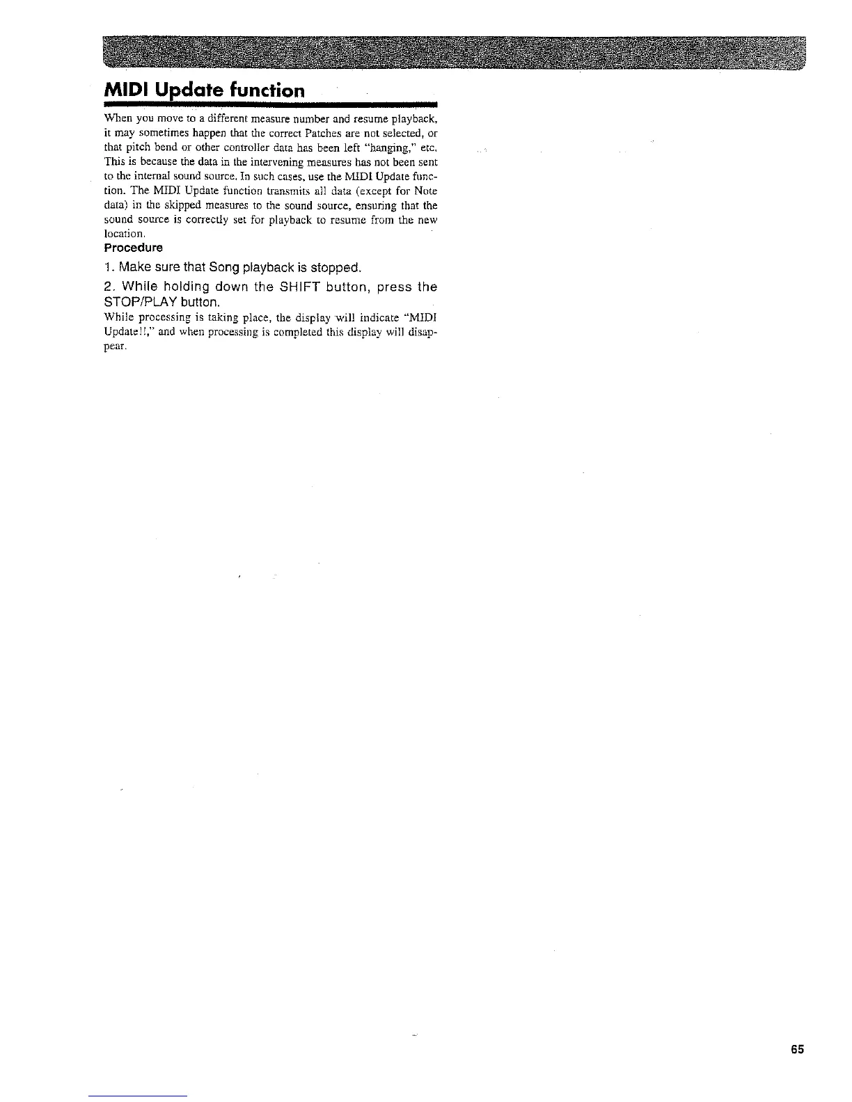 Roland XP-50 - MIDI Update Function