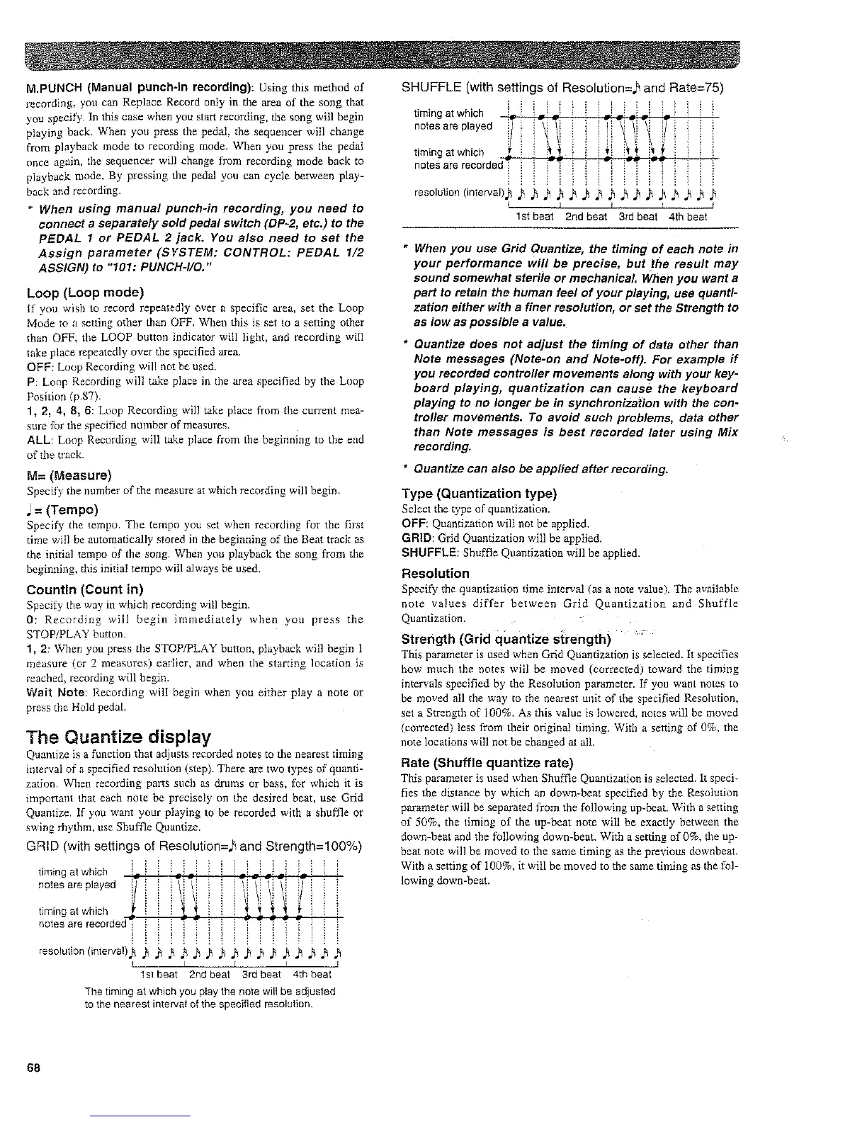 Roland XP-50 - The Quantize Display; Resolution; Strength (Grid Quantize Strength); Rate (Shuffle Quantize Rate)