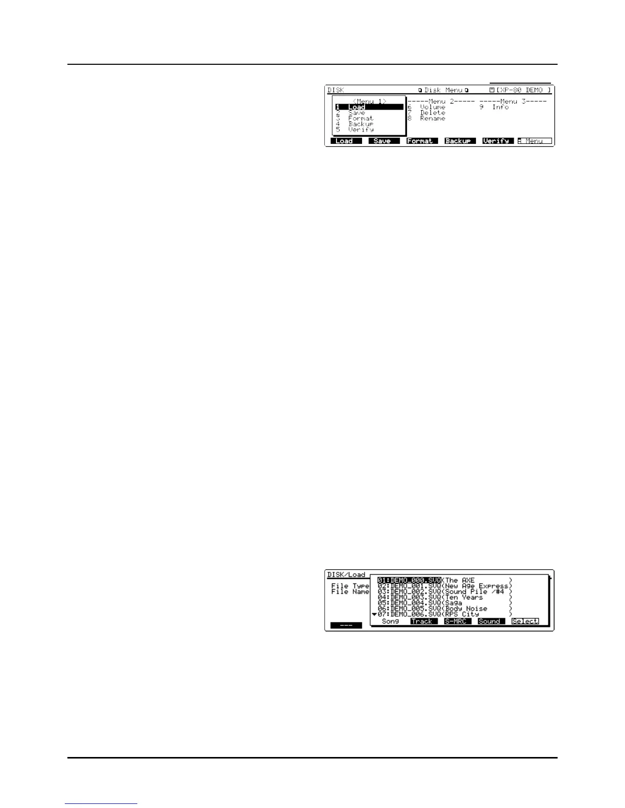 data from disk into the XP-80’s memory (Load), and saving a
