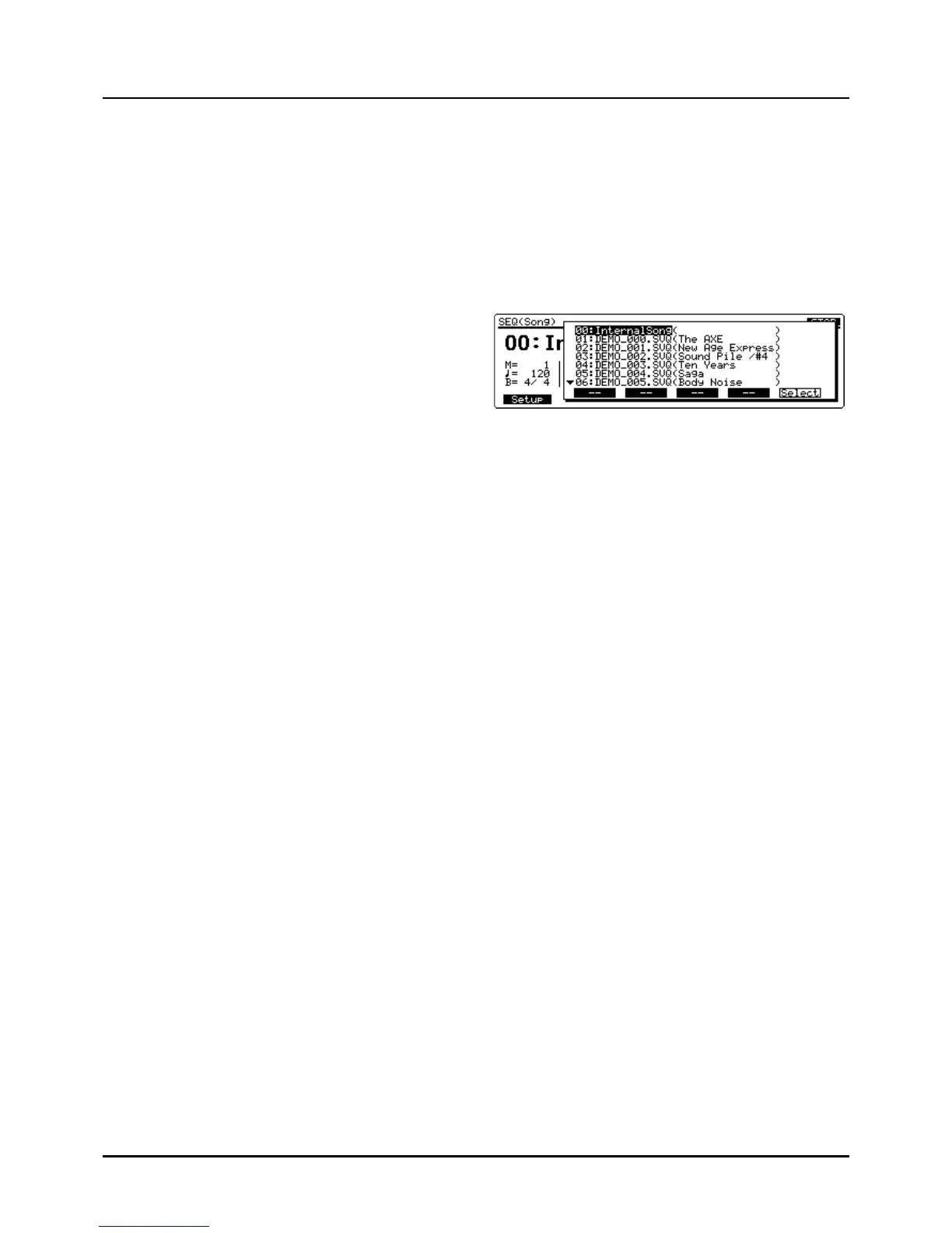 ❹ Press [F6] (Select) or [ENTER] to finalize the song