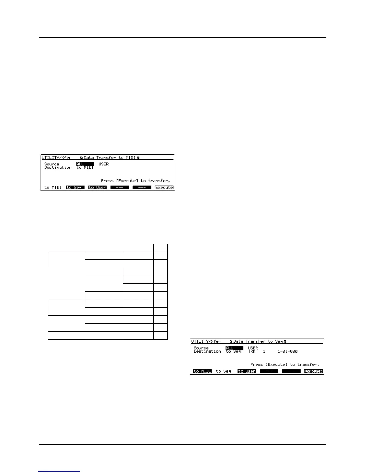 ❸ Press [F1] (to MIDI) to call up the Data Transfer to