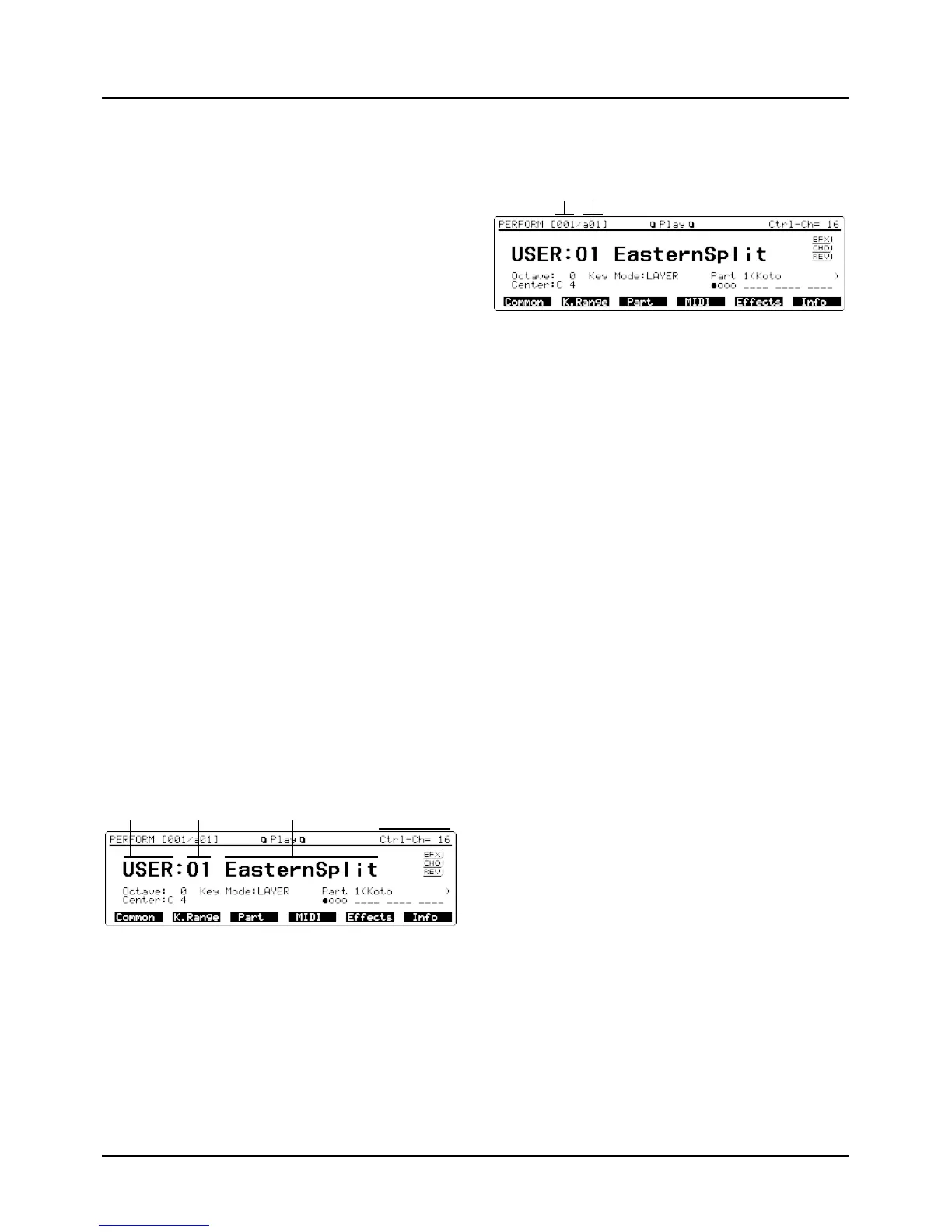 ❹ Press a button from TRACK/PART [1]–[16] to select a