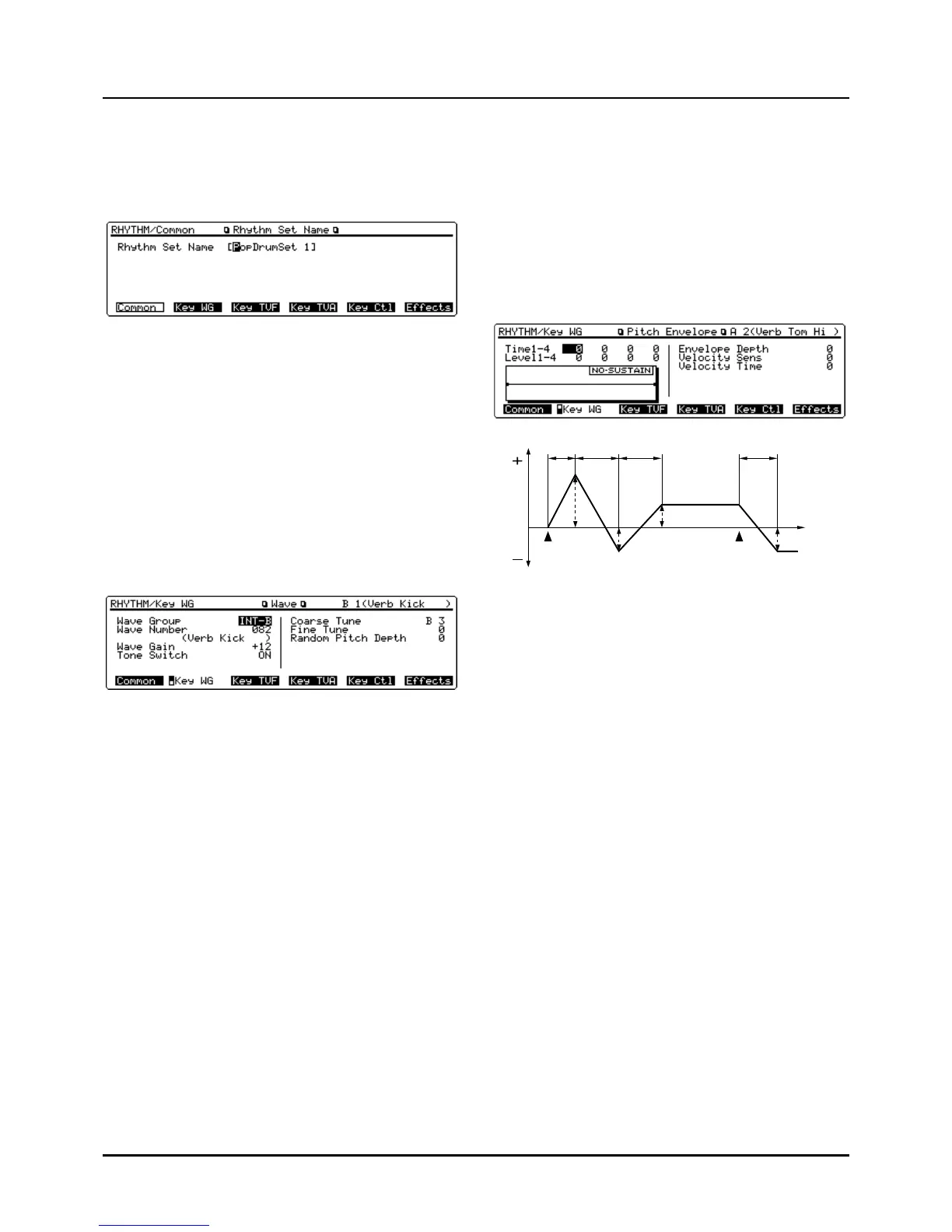 Sets pitch envelope level (Level 1–4) to determine pitch of