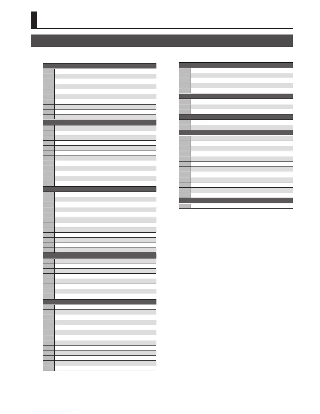 For details on the parameters of each eect, refer to “Parameter Guide PDF.”