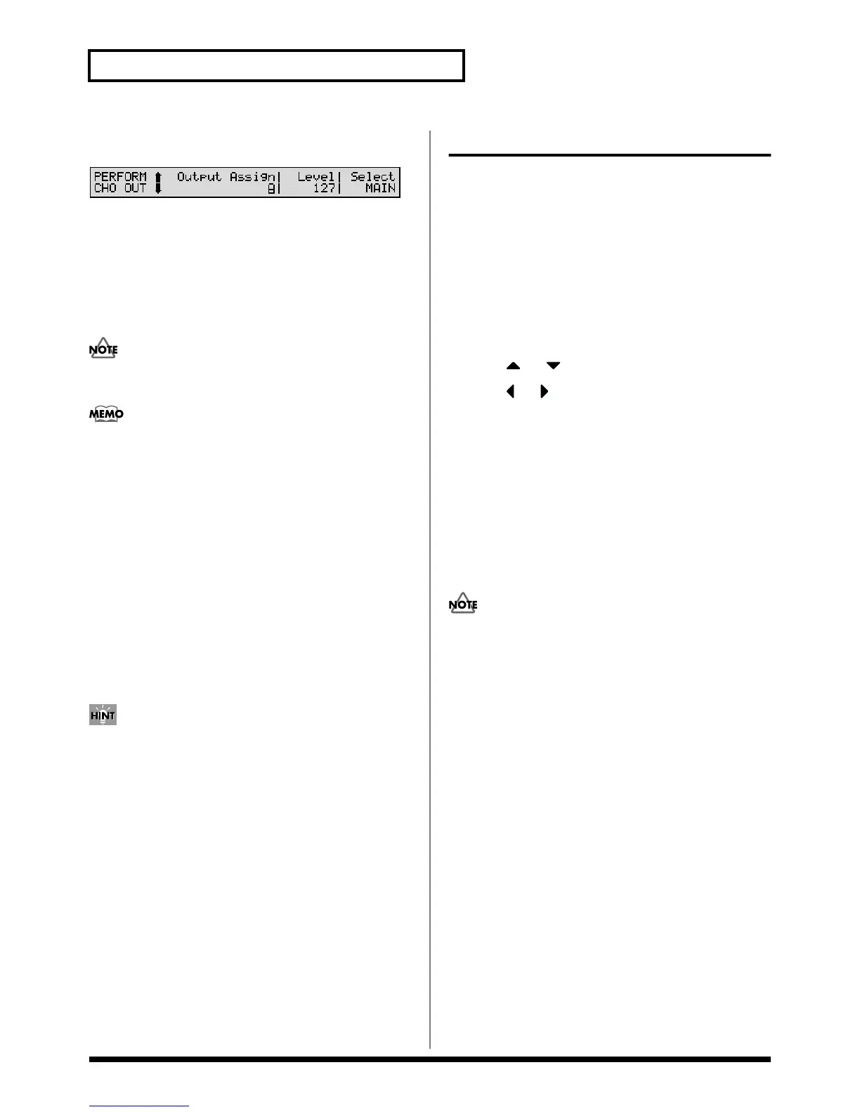 Selects the pair of OUTPUT jacks to which the Chorus sound