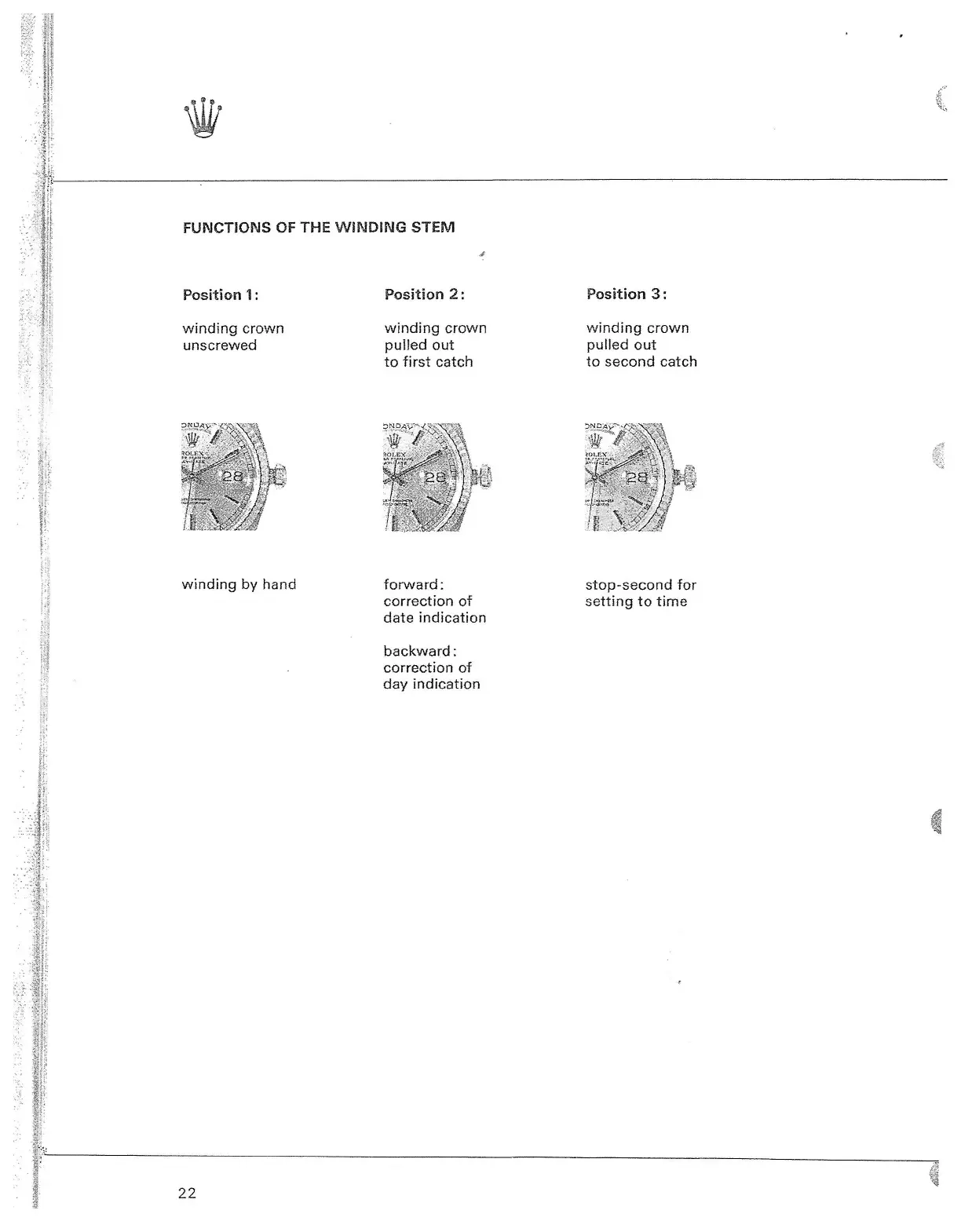 Rolex CALIBRE 3155 - Functions of the Winding Stem