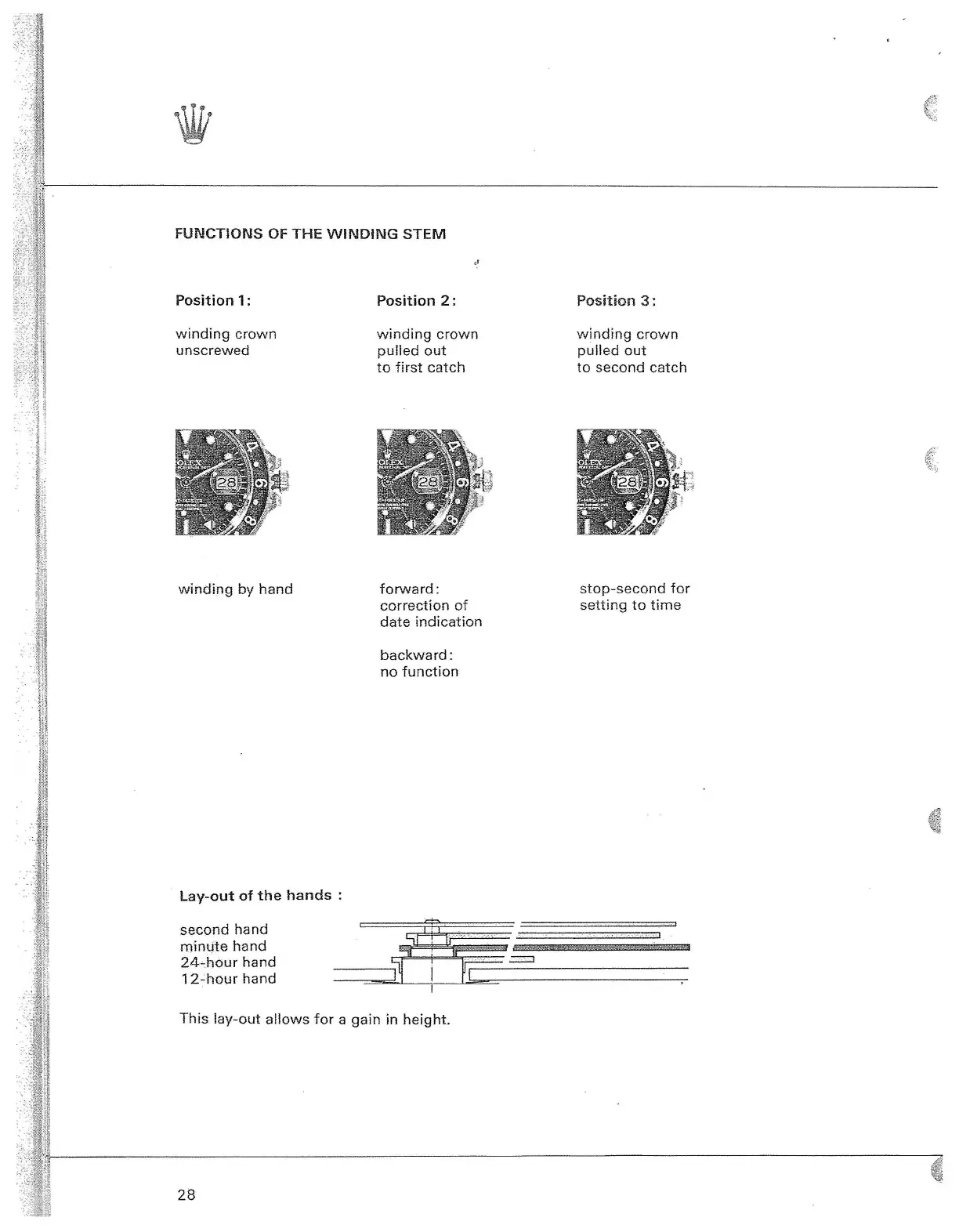 Rolex CALIBRE 3155 - Functions of the Winding Stem