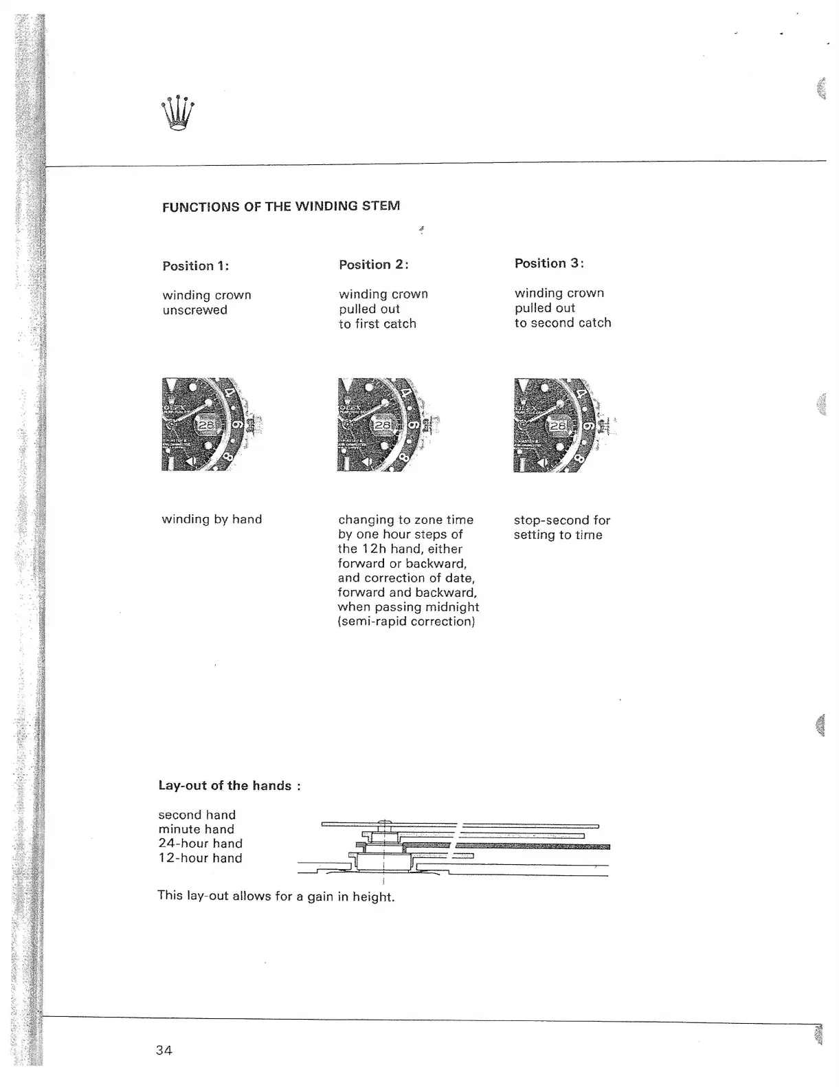 Rolex CALIBRE 3155 - Functions of the Winding Stem