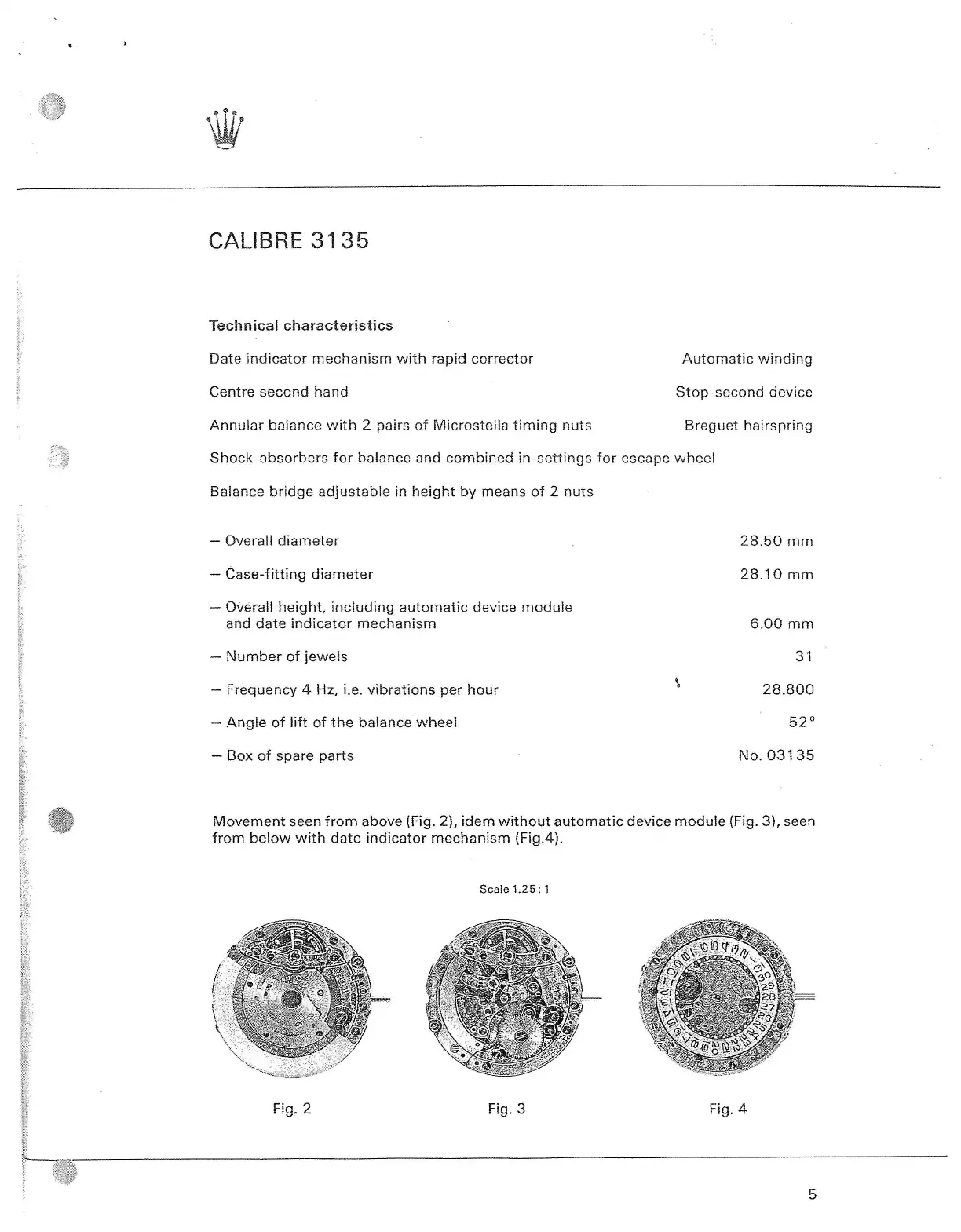 Rolex CALIBRE 3155 - Technical Characteristics