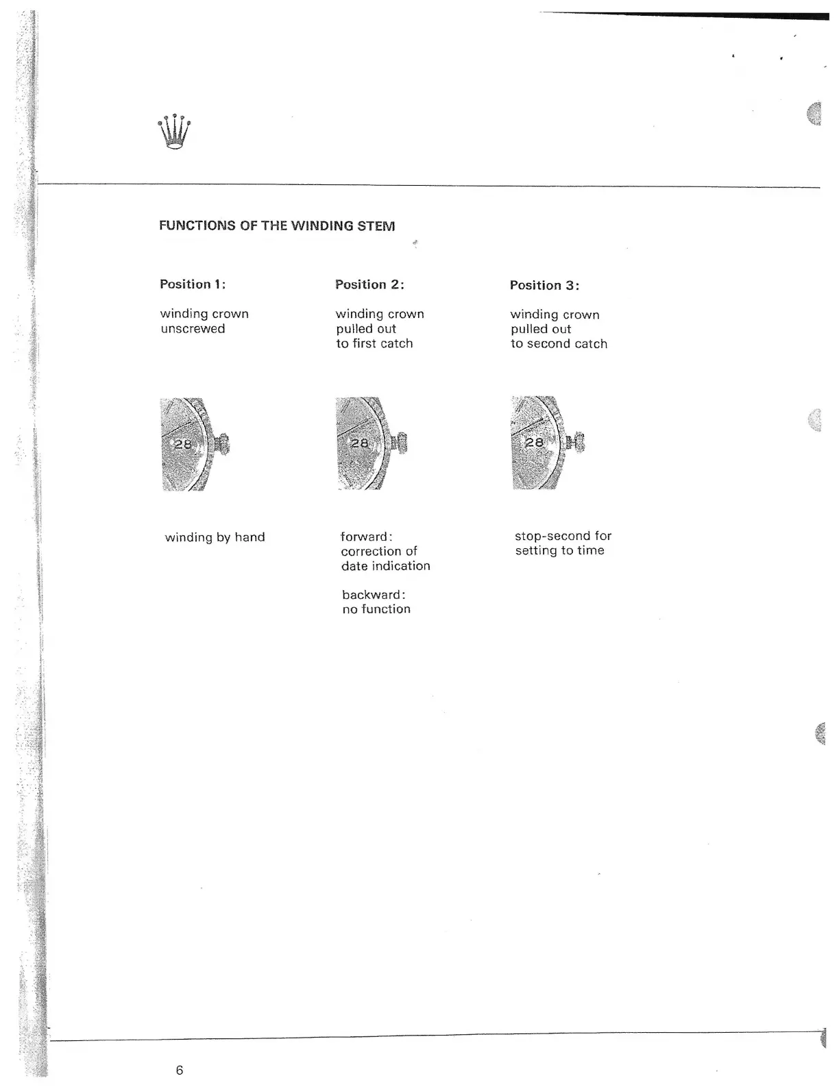 Rolex CALIBRE 3155 - Functions of the Winding Stem