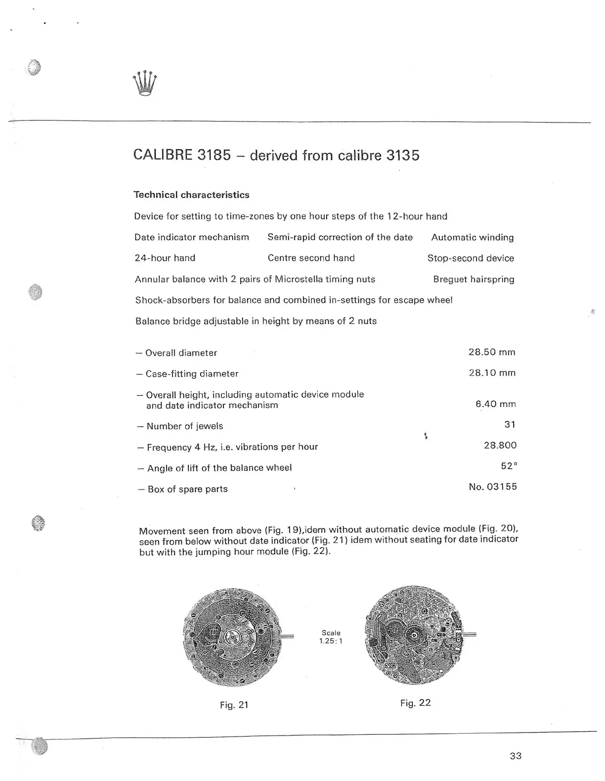 Rolex CALIBRE 3175 - Technical Characteristics