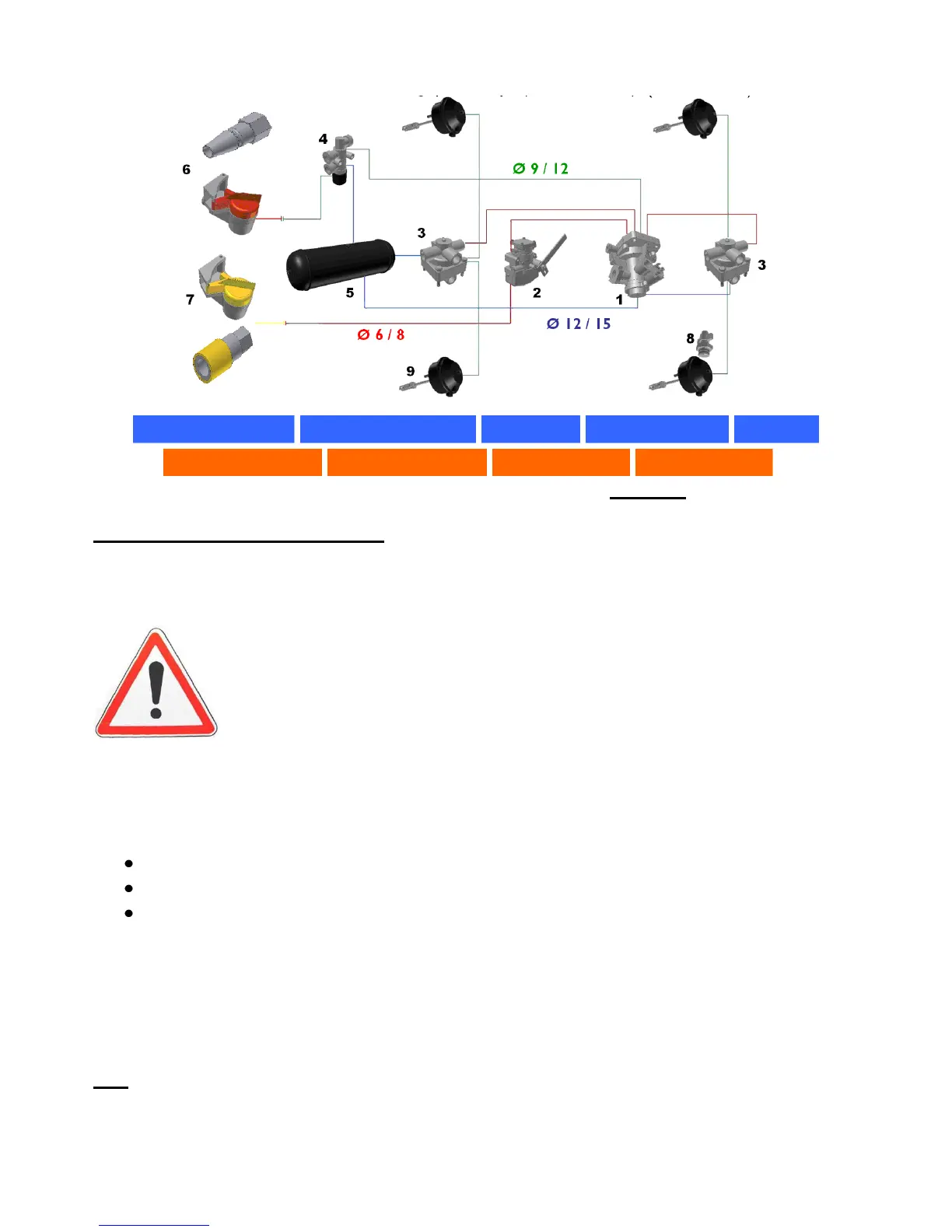 Example of air braking system on 2 axles (40 kmh)