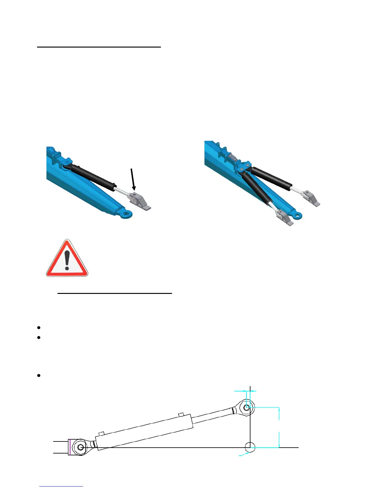 The axes of the cylinder swivel and the ring of the drawbar must be at a distance of :