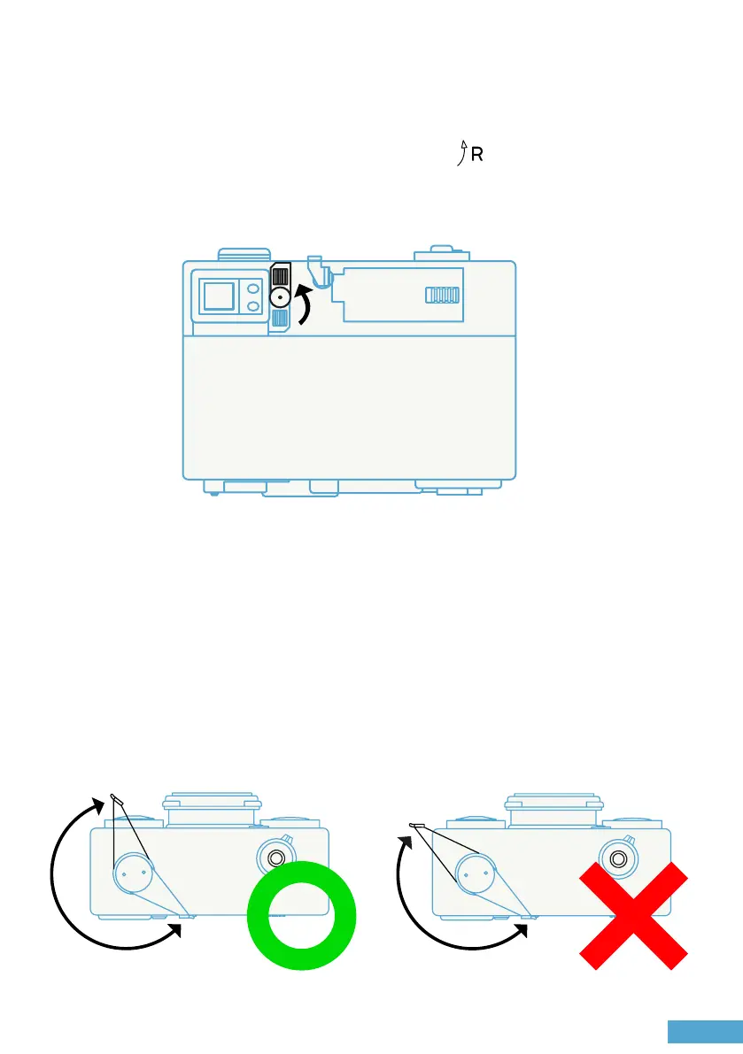 • Aer the last picture, rotate the rewind tab upwards before