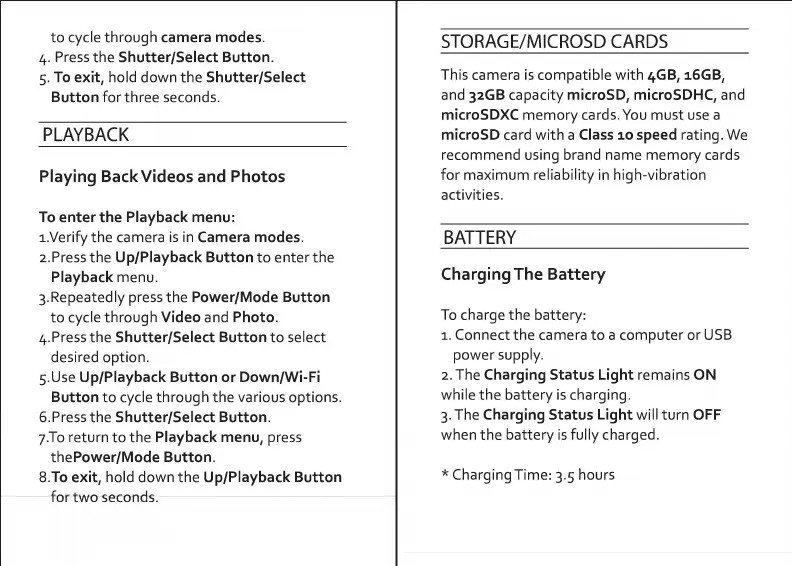 Rollei Actioncam 310 - Playing Back Videos and Photos; Storage;Microsd Cards; Charging the Battery