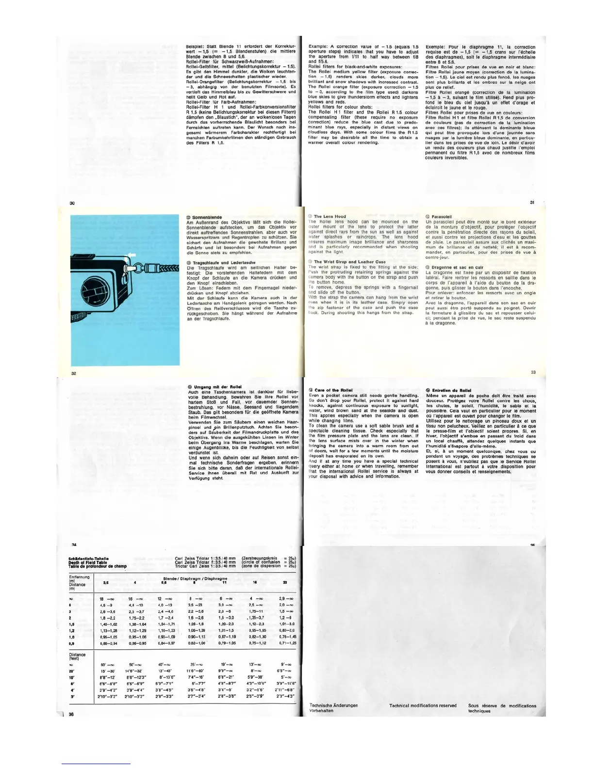 Rollei B35 - The Lens Hood; The Wrist Strap and Leather Case; Care of the Rollei