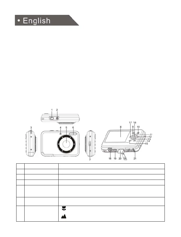 Power on/off button Press this button to turn the camera on, press again to turn it off.