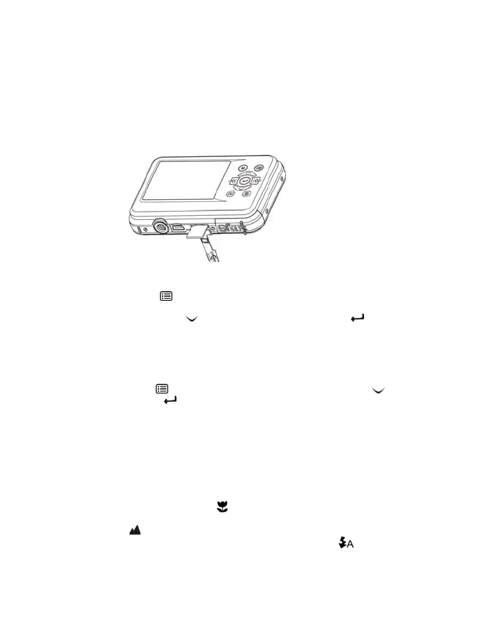 Note: The micro SD memory card must be formatted before taking photographs. See the following