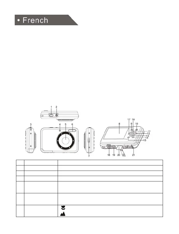Déclencheur Appuyez sur ce bouton pour prendre des photos.