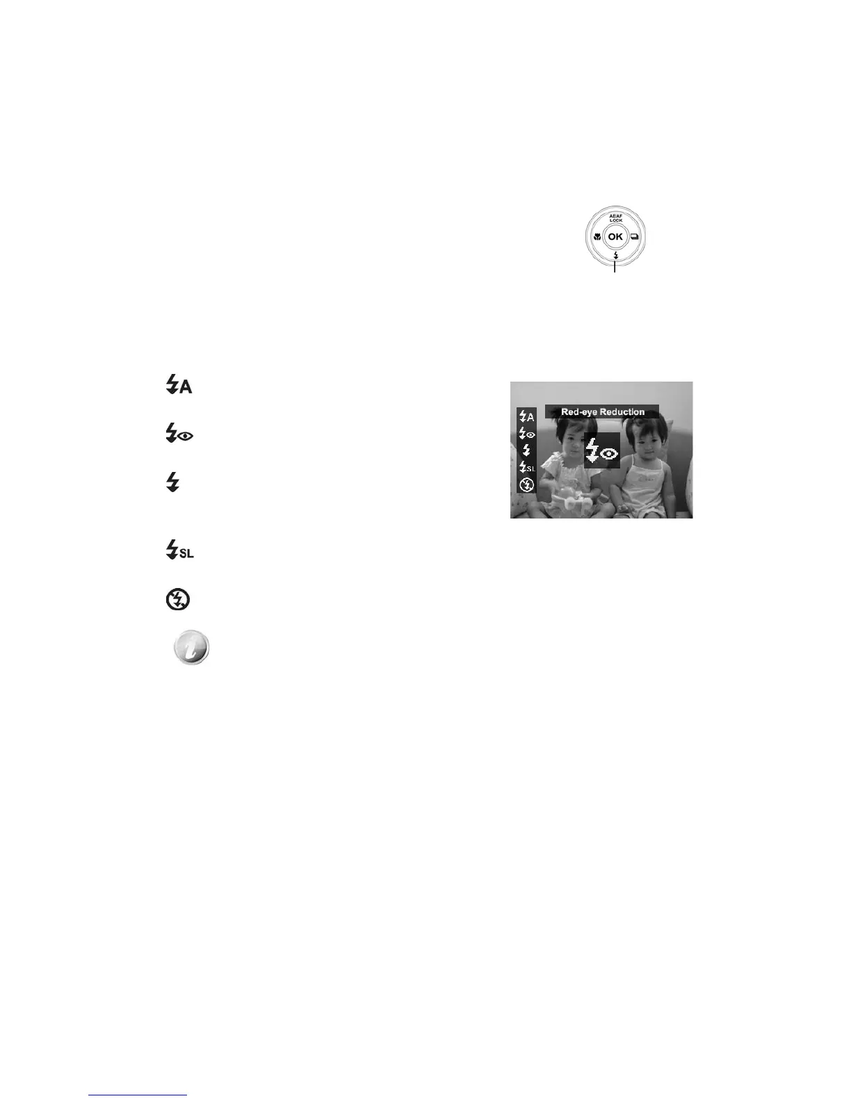 When taking pictures in difficult lighting conditions, use the Flash/Down